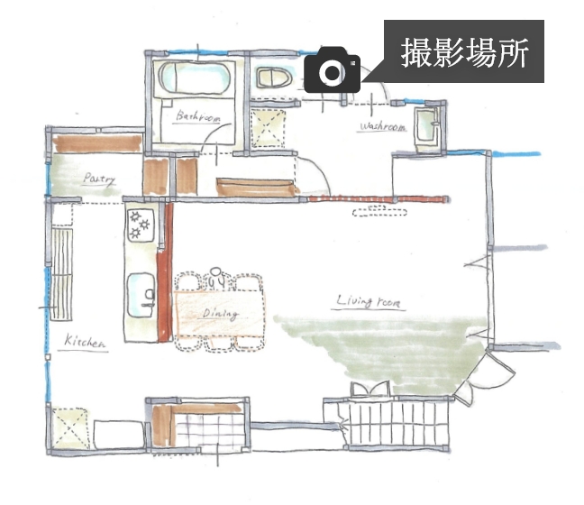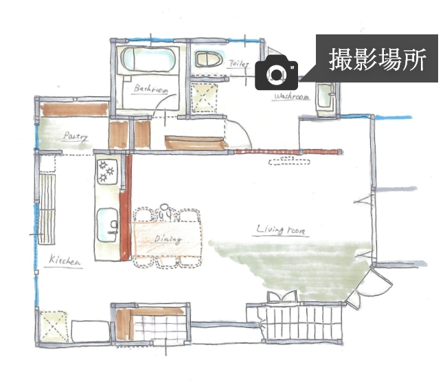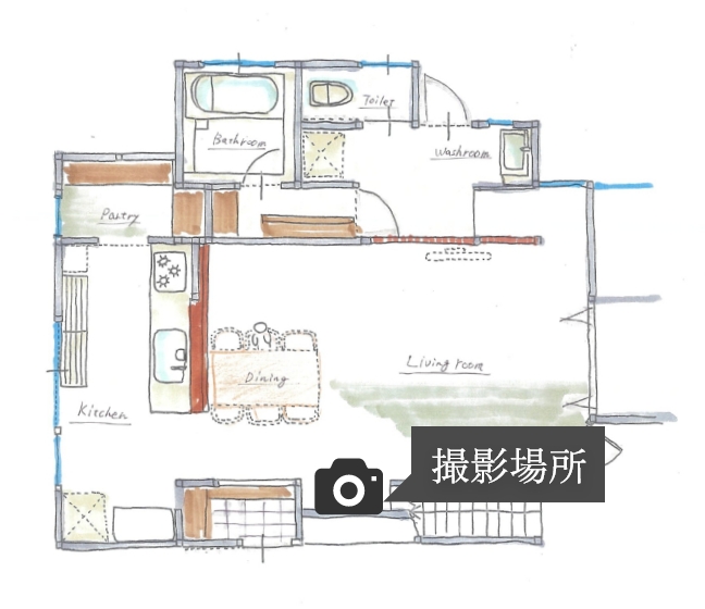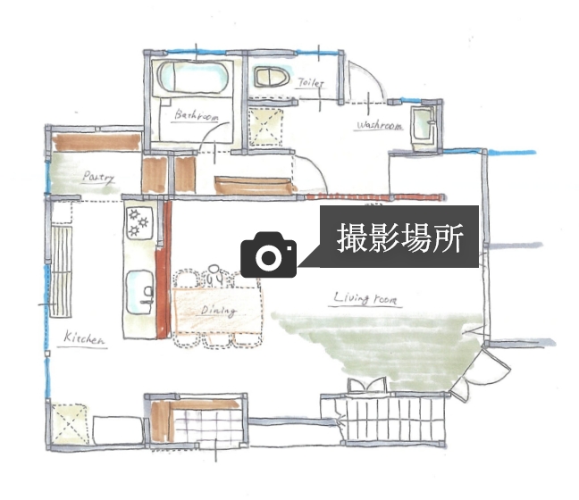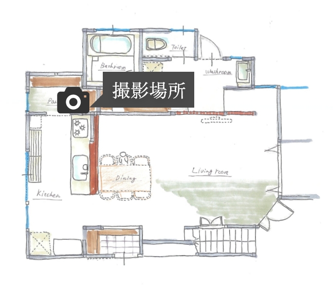 お客様とはご予算の限られた中でのご相談からスタートし、家族が一番集まることが多いLDKを重視したゾーンリノベでご提案し、LDKを主軸とした同線で各水回りへの移動がし易い配置プランとさせていただきました。